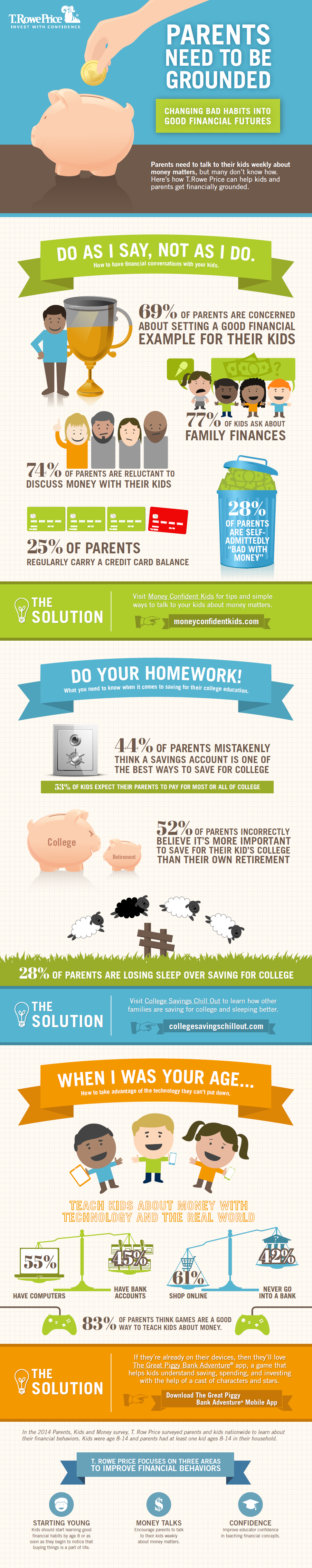 According to a recent survey by T. Rowe Price, about 3 out of 4 parents are hesitant to talk with their kids about finances, even though two-thirds of parents were concerned about setting a good financial example for them.