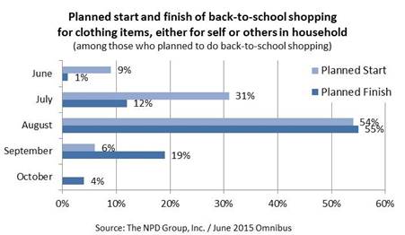 Contrary to shopping the traditional peak month of July, the shoppers surveyed said they are waiting until August or September, according to a survey conducted by The NPD Group market research firm. Roughly 55 percent of those surveyed said they will finish back-to-school shopping in August and 19 percent said September, making September the second largest buying month for back-to-school.