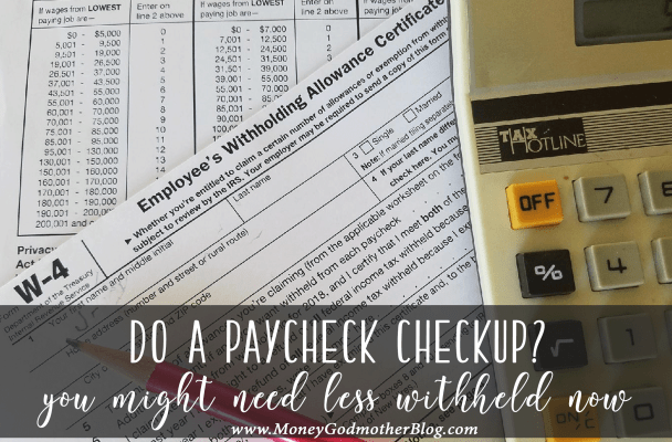 My husband just switched jobs, and it’s kicked us into gear! We usually owe $1,000+ every year come tax time, so we adjusted his withholdings to (hopefully) make our owed amount less. I wish we had done this two years ago, but we were just being lazy!
